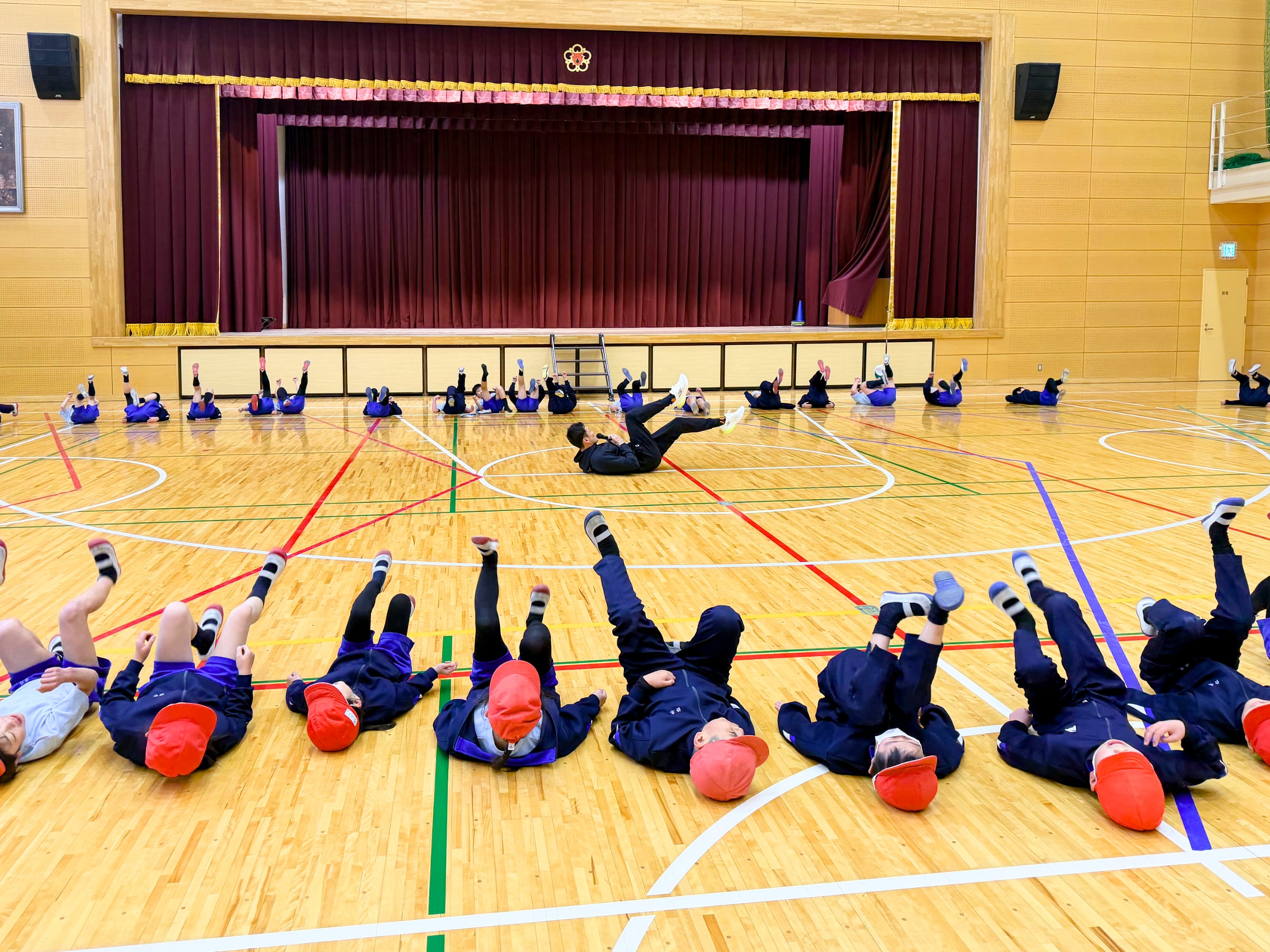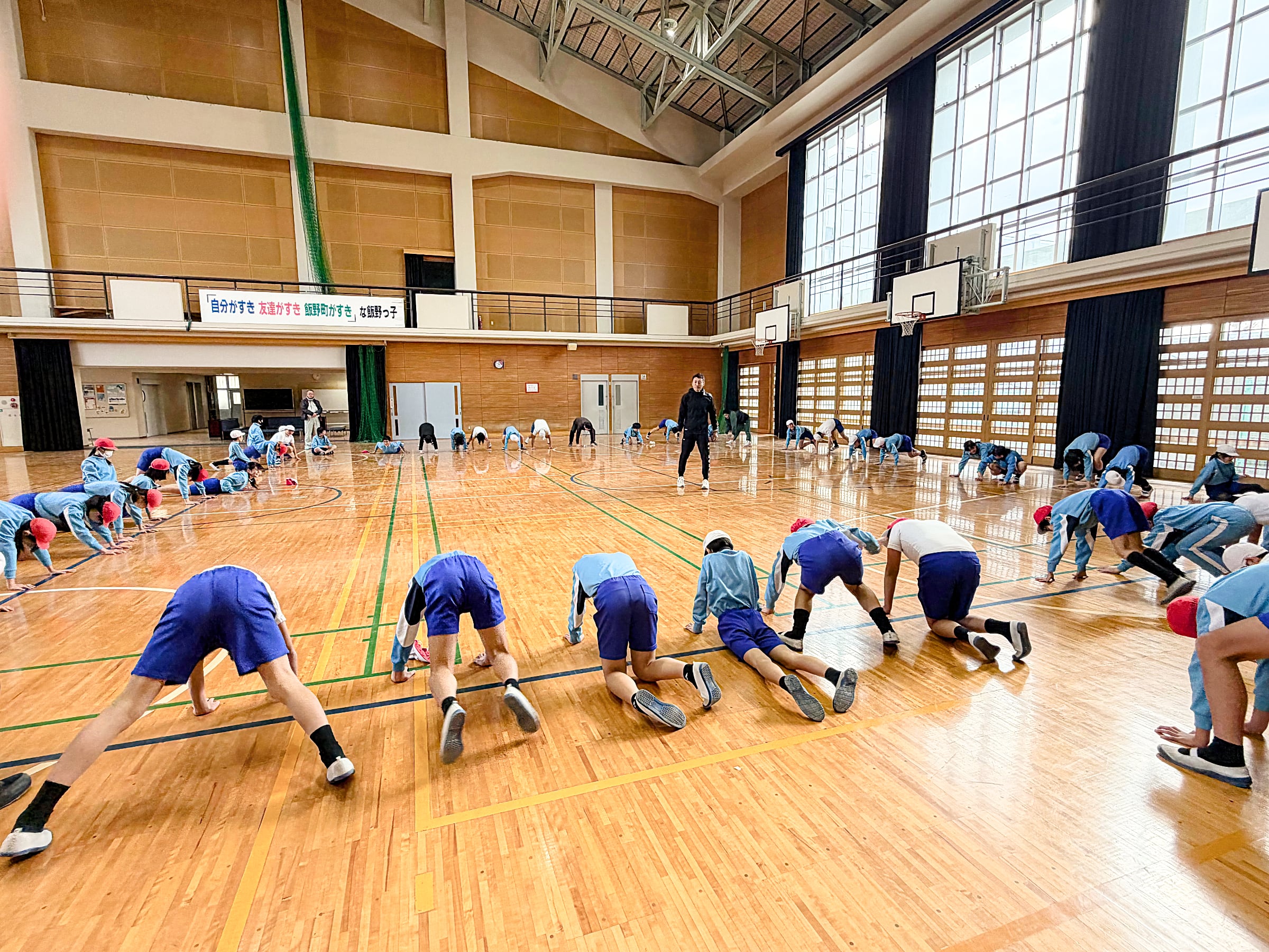 私は2月1日に開催された香川丸亀国際ハーフマラソンのゲスト仕事を毎年恒例でしてきました。大会前には地元の小学校を巡り、スイッチマン体操教室を行いましたが(写真)、香川の子どもたちは本当にいつも元気です。