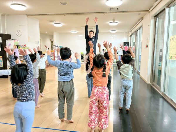 私は先月名古屋の園(4園)を周り、各保育園でスイッチマン体操教室を年中さん年長さんに分けて2回ずつ開催してきました。名古屋の園児はこれまた元気でした。
